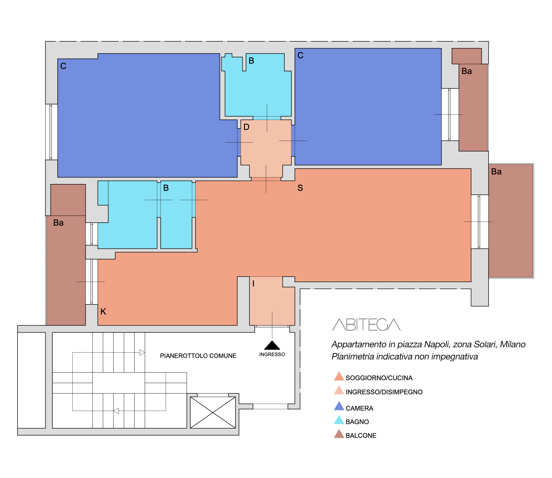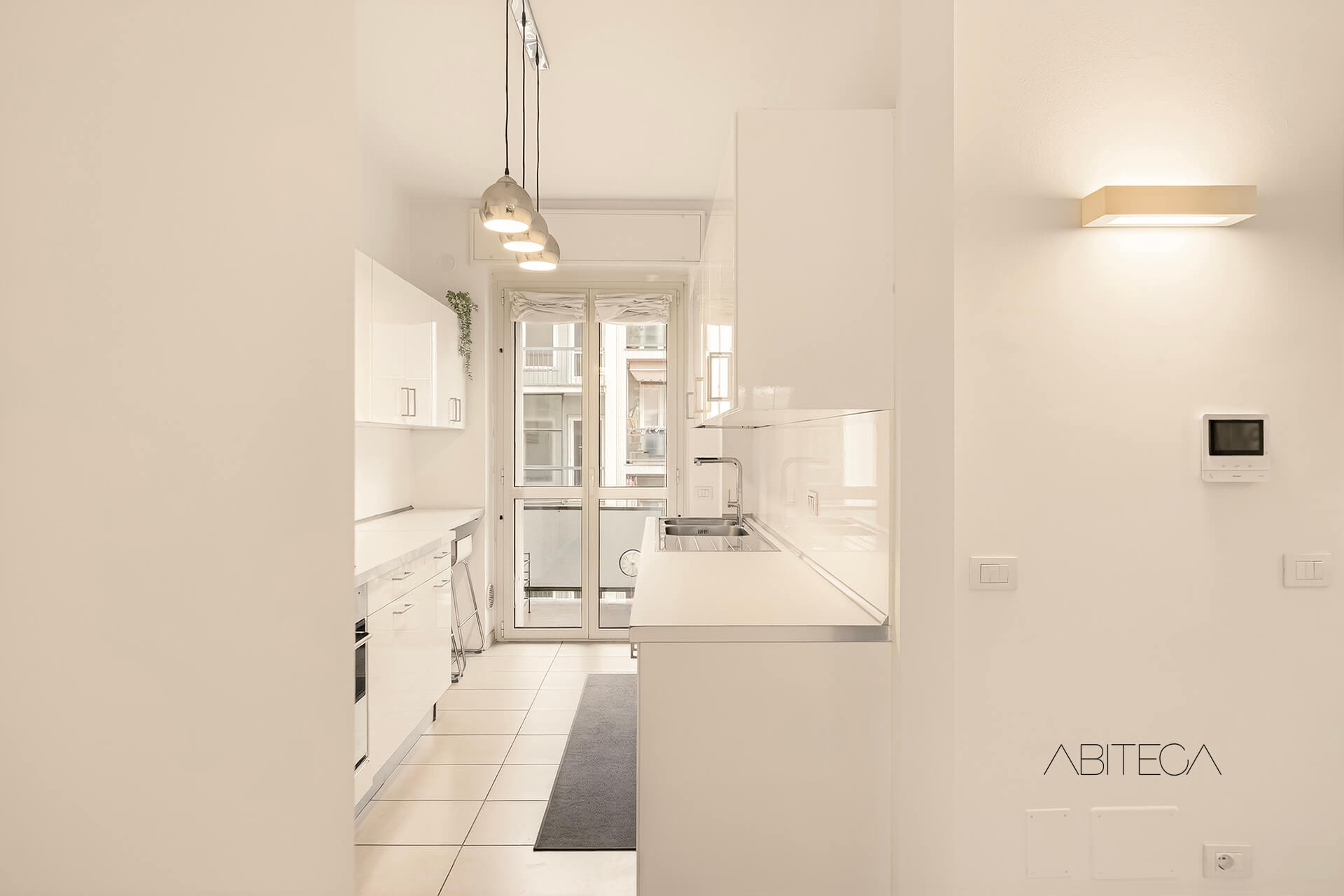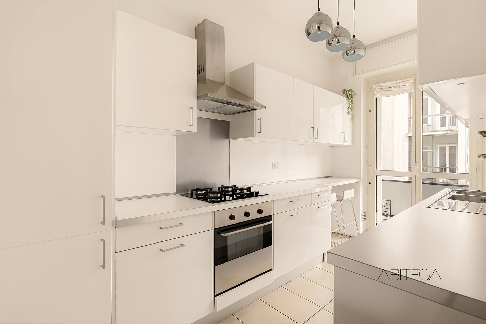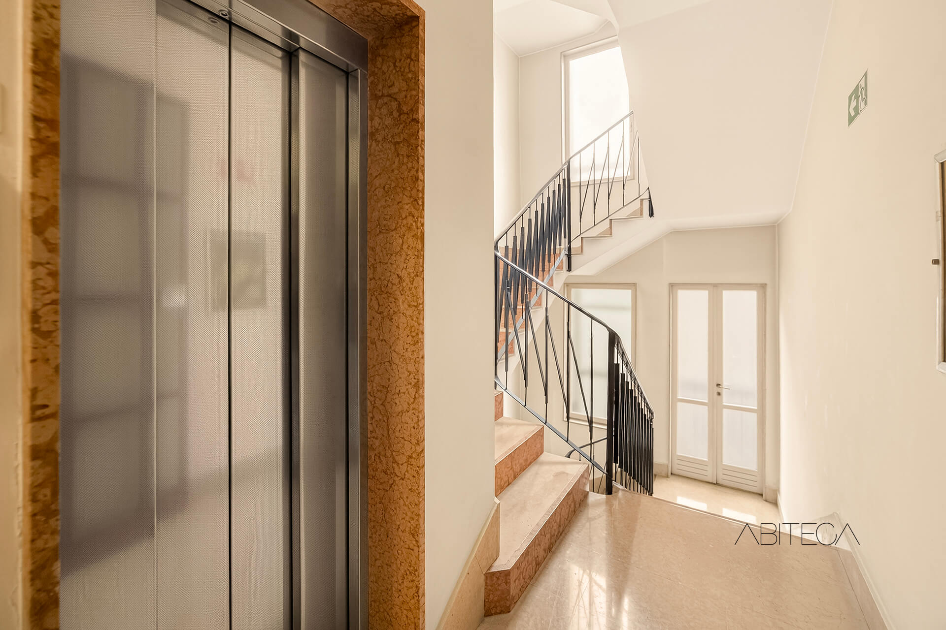 L’esposizione est-ovest, complice il piano alto, garantisce luce naturale per tutto l’arco della giornata.
