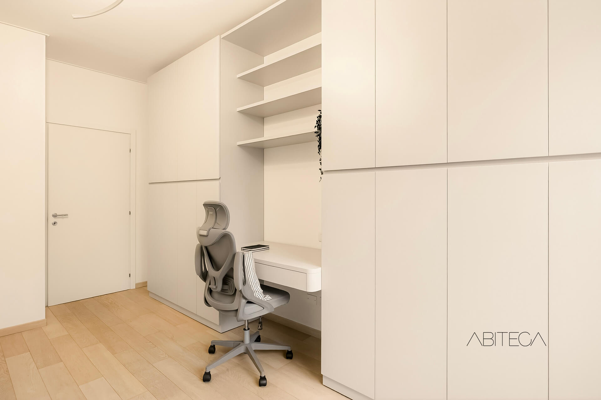 Proseguendo, una porta separa la zona giorno dalla zona notte: un dettaglio che fa la differenza in termini di comfort e privacy.