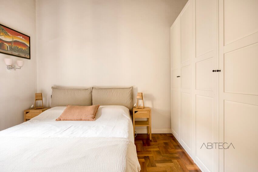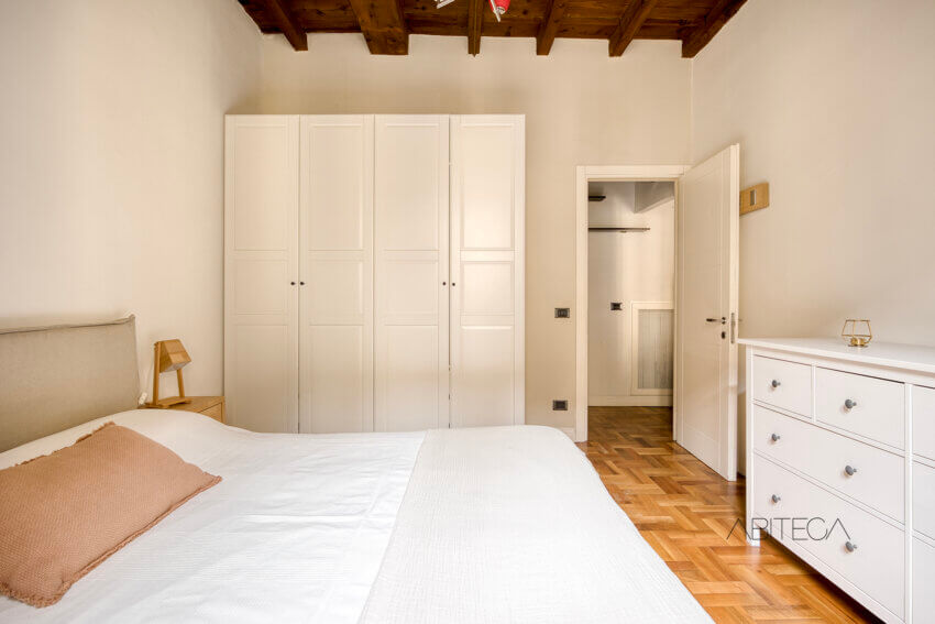 La camera da letto matrimoniale, anch’essa con affaccio interno, ha spazio per letto, armadio capiente e comò.