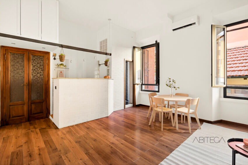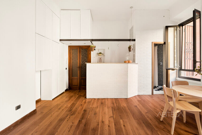 Questo monolocale fa per te se cerchi una piccola casa di carattere, tutto sommato spaziosa, con i soffitti alti, la luce e il silenzio per viverci bene dentro.