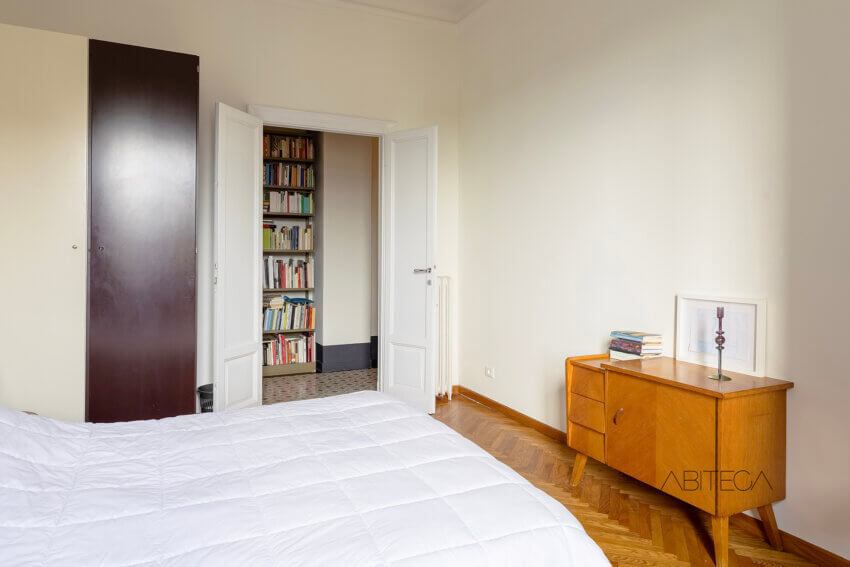 Siamo in uno stabile dai soffitti alti, quindi parliamo di un terzo piano particolarmente elevato: l’altezza contribuisce al silenzio e alla sensazione di respiro che si prova una volta entrati in casa.