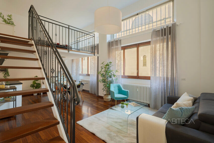 Altezze scenografiche “stile loft”, tanta luce naturale e un tranquillo affaccio interno: una casa accogliente e diversa dalle altre.