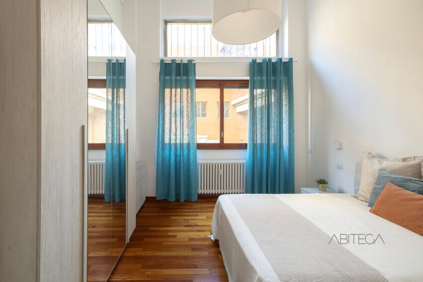 La camera matrimoniale è particolarmente spaziosa, basta osservare gli arredi presenti: ci sono il letto matrimoniale, i comodini, l’armadio a 4 ante e c’è ancora la possibilità di muoversi liberamente. Anche questo locale beneficia di una finestra a tutta parete.